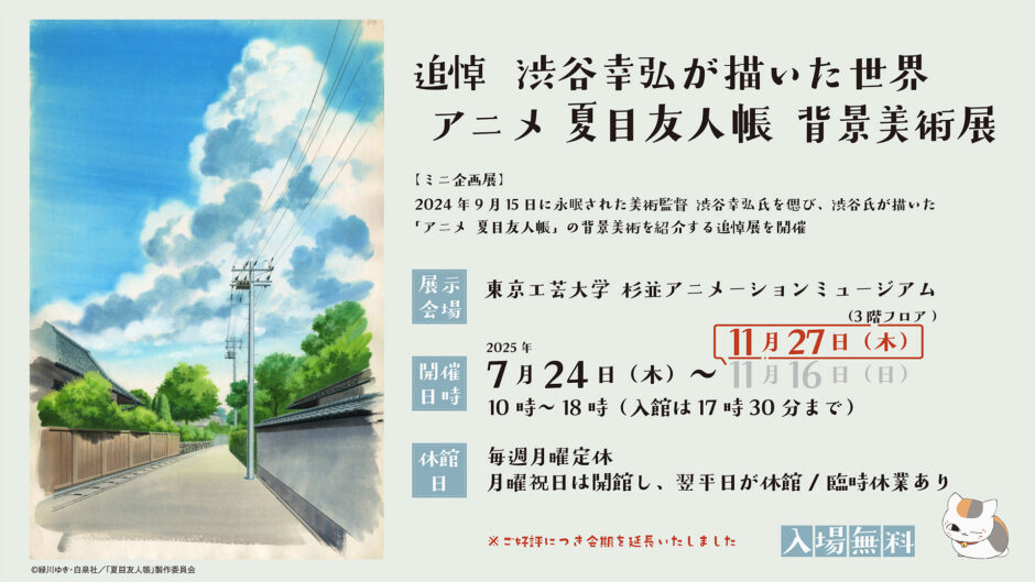 企画展『映画 すみっ コぐらし 空の王国とふたりのコ』展2025/11/1~2026/3/29 イベント追悼 渋谷幸弘が描いた世界 アニメ 夏目友人帳 背景美術展2025/7/24〜11/27 ※会期を延長いたしました 映画 すみっコぐらし 上映会2025/11/22~11/24 ワークショップ等