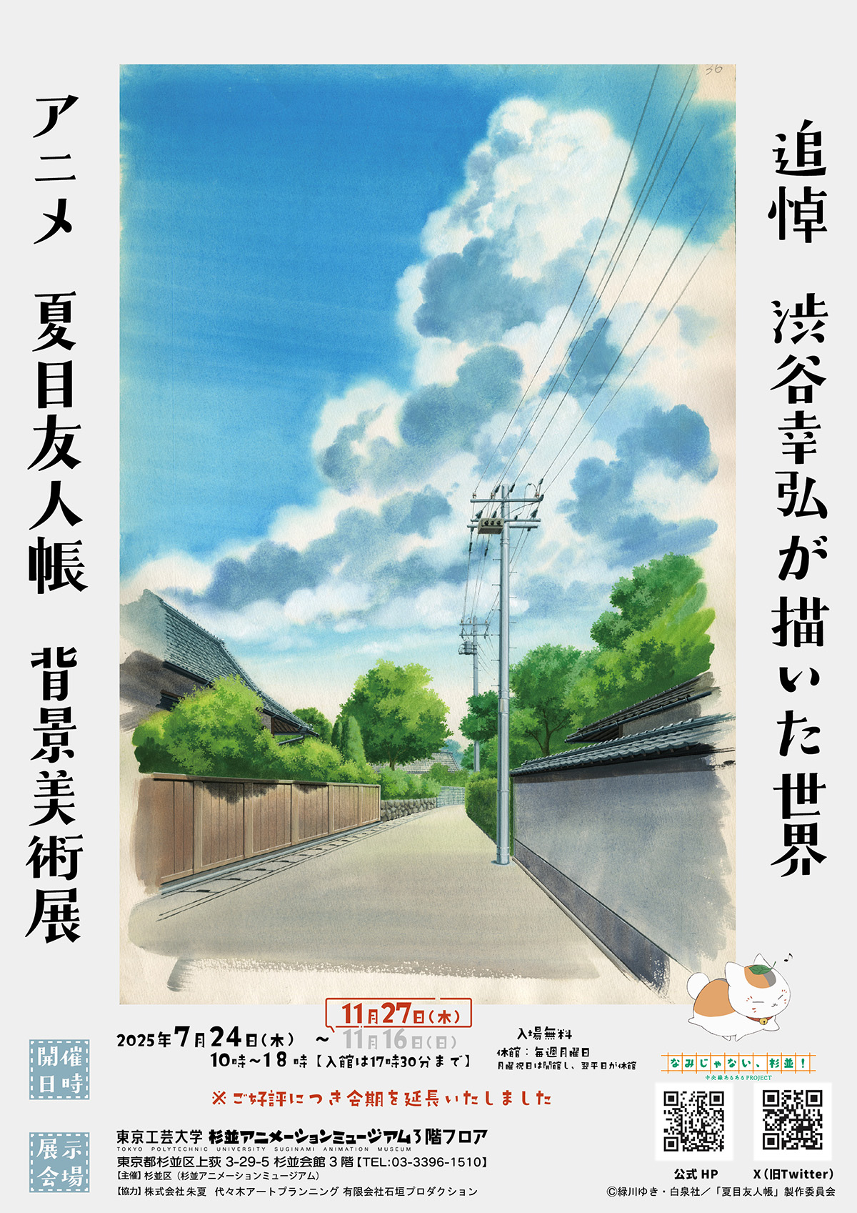 本展は、2024年9月15日に永眠された美術監督 渋谷幸弘氏を偲び、渋谷氏が描いた「アニメ 夏目友人帳」の背景美術をご紹介する追悼展です。
