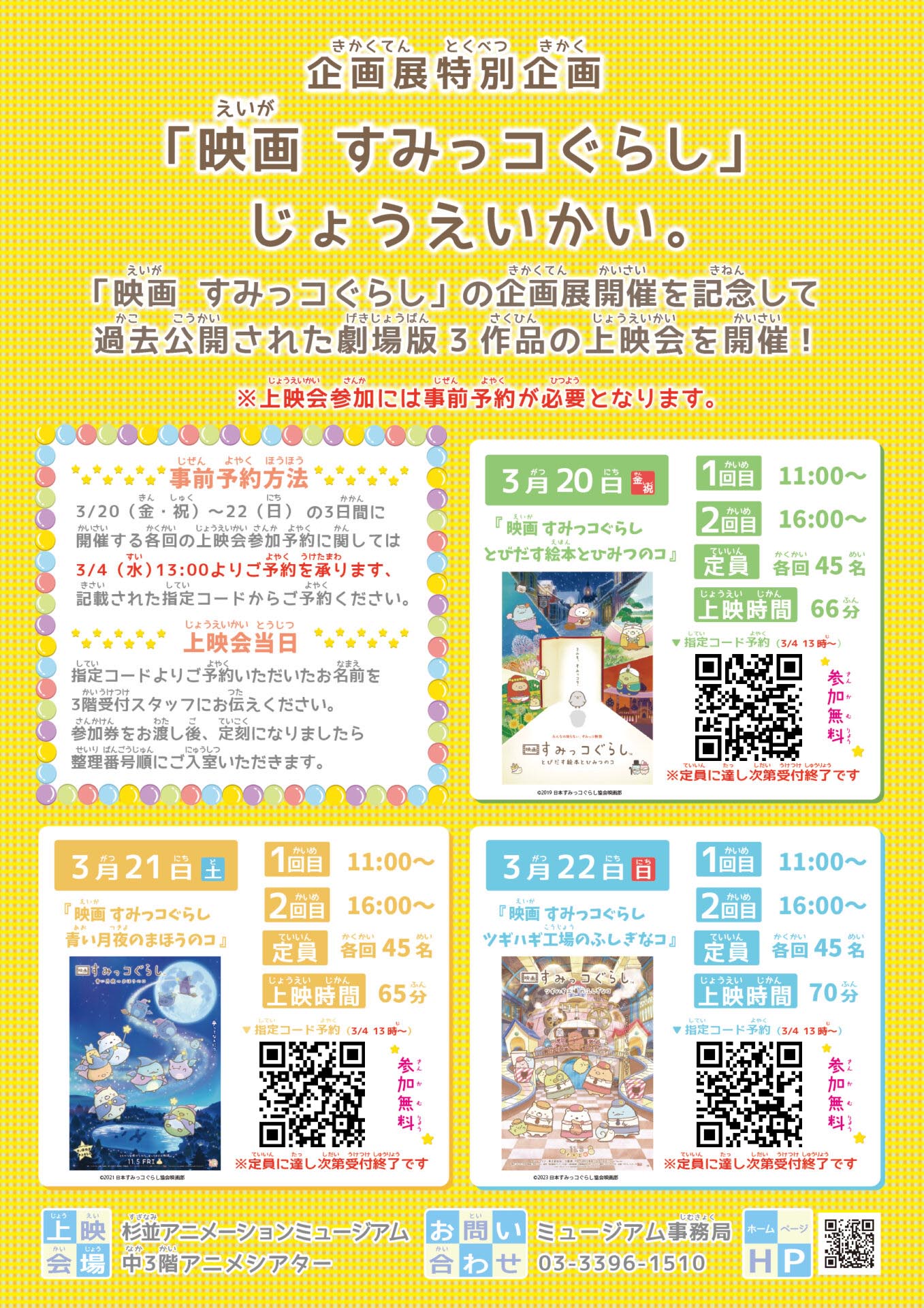 ☆★☆【事前予約制】企画展「映画 すみっコぐらし じょうえいかい」開催☆★☆