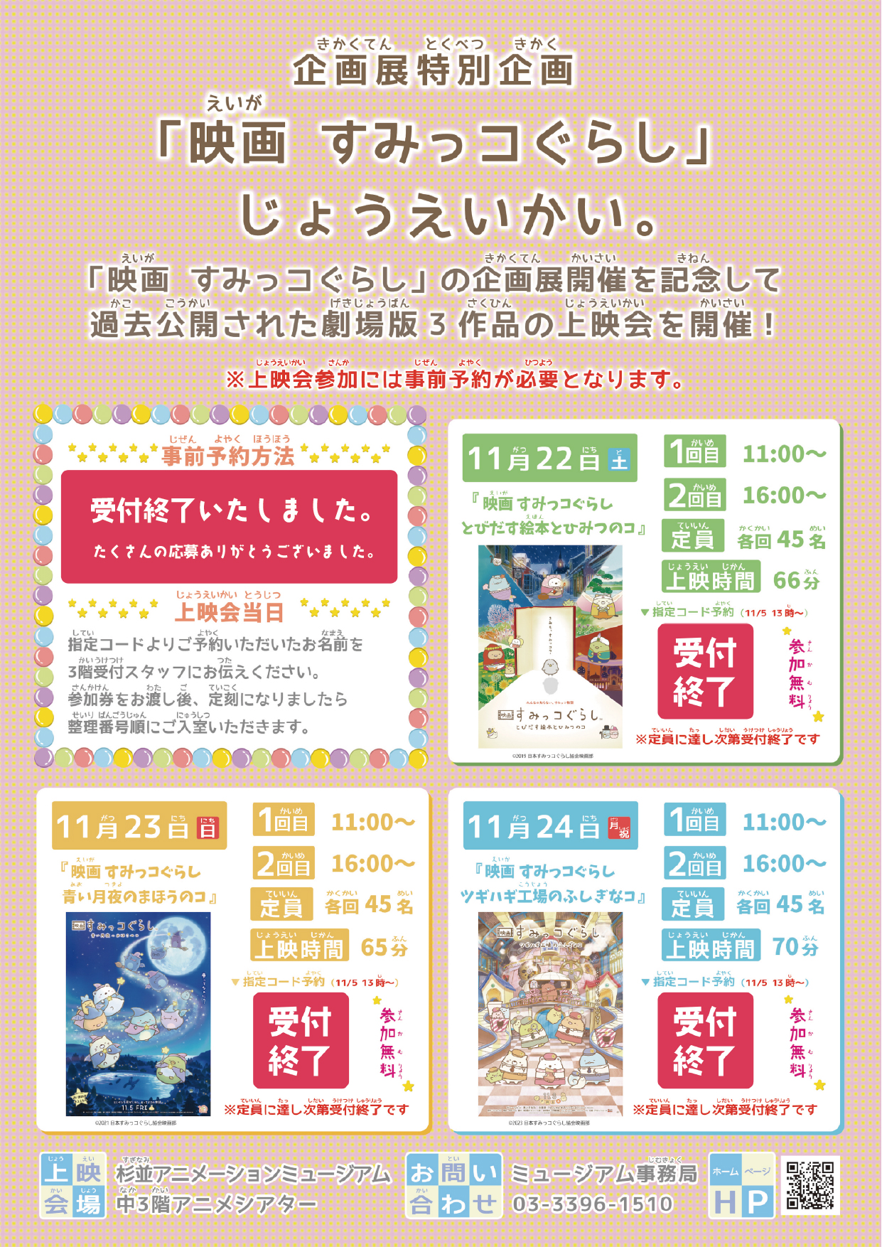 ☆★☆企画展「映画 すみっコぐらし じょうえいかい」開催☆★☆【事前予約制】