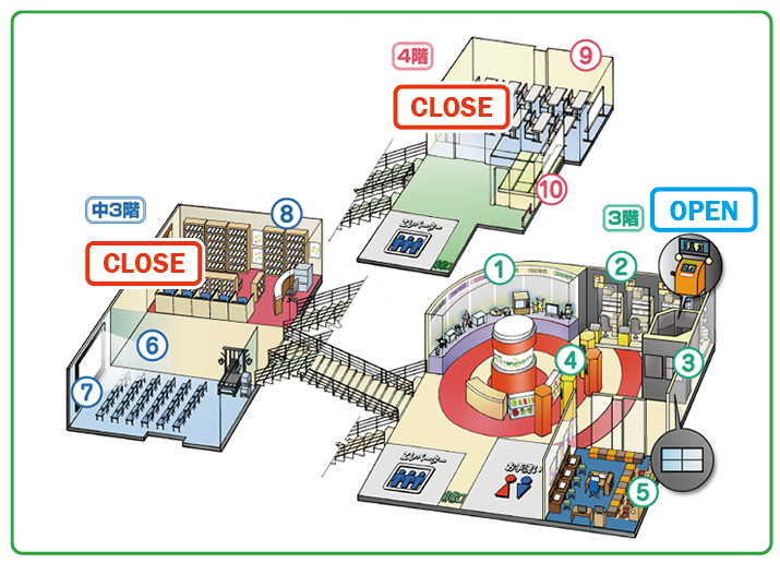 ご見学は3階フロアー(常設展示フロアー ①~⑤)のみとなります。